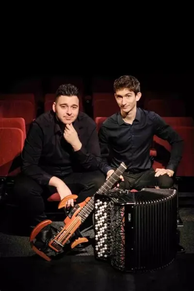 Ces deux virtuoses allient humour et exécution éblouissante des chefs-d’œuvre à travers des arrangements d’une étonnante inventivité. L’improbable rencontre de l’accordéon de Julien Beautemps et de la très spéciale « moov » guitare de Sotiris Athanasiou éblouit le public de France et d’Europe depuis son passage remarqué sur France Musique avec l’envoûtant Black Earth de Fazil Say. Jonglant avec les univers musicaux, le duo Argos ne se contente pas de recréer les chefs-d’œuvre du passé, comme Rhapsody in Blue, La Flûte enchantée de Mozart, La Cathédrale Engloutie de Debussy ou encore le Boléro de Ravel. Ils embrassent également les multiples facettes de leurs instruments à travers de fraîches créations contemporaines, des danses brésiliennes virtuoses et, bien sûr, le tango. Diplômés d’un master de Musique de chambre et du Diplôme d’Artiste Interprète du Conservatoire de Paris, ils sont régulièrement invités sur France Musique, au Festival de Radio France de Montpellier, Festival d’Auvers-sur-Oise, Jeudis Musicaux de Royan, Saoû Chante Mozart, La Folle Journée de Nantes. En septembre 2025, ils sortent leur premier CD « Argos, Masterworks » autour de leurs dernières créations chez DiscAuvers. Avec notamment une recomposition du Boléro de Ravel avec la mezzo Axelle Saint-Cirel pour le cent-cinquantenaire de la naissance de Maurice Ravel.