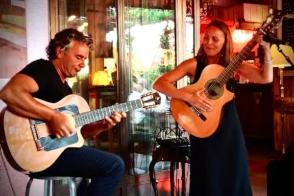 Ce duo de guitares et de musique latine offre un répertoire subtil et chaleureux, inspiré par les soneros légendaires cubains et la chanson française des années 50-60. Des boléros aux rumbas, leurs chansons invitent danseurs et mélomanes de tous les âges.